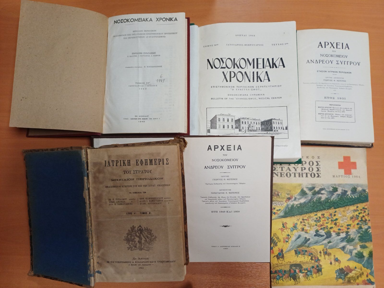 Η Βιβλιοθήκη Ιστορίας της Ιατρικής του Εργαστηρίου Ιστορίας της Ιατρικής και Δεοντολογίας της Ιατρικής της Ιατρικής Σχολής του Πανεπιστημίου Κρήτης φιλοξενεί στη συλλογή της τα περιοδικά Νοσοκομειακά Χρονικά, Αρχεία του Νοσοκομείου Ανδρέα Συγγρού, Ελληνικός Ερυθρός Σταυρός Νεότητος και Ιατρική Εφημερίς του Στρατού.