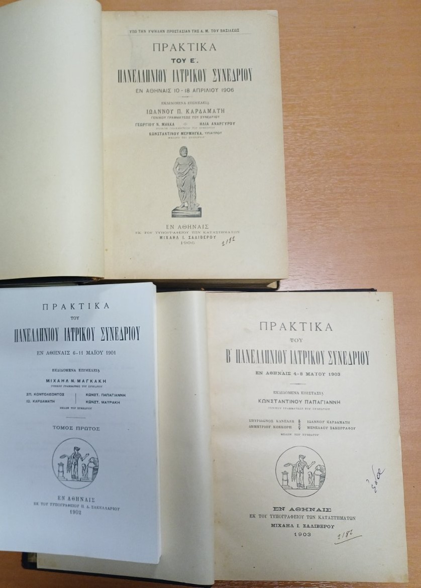 Το Εργαστήριο Ιστορίας της Ιατρικής και Δεοντολογίας της Ιατρικής φιλοξενεί στη Βιβλιοθήκη του τα Πρακτικά των Πανελληνίων Ιατρικών Συνεδρίων του 1901, 1903 και 1906, σε πολυτελείς δερματόδετους τόμους.